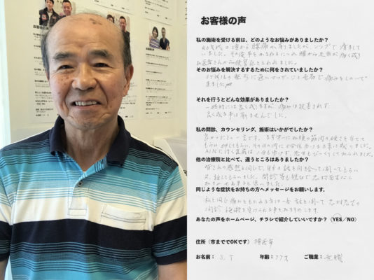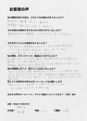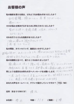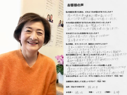 10ヶ所以上色々な所に通ったけど改善しなかった方からお喜びの声を頂きました。