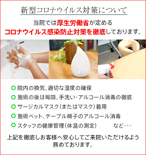 その中で培った施術技術でどうしても「改善があまり感じられない・・・」と思った場合は、初回の施術が終わった時点でお伝えください。