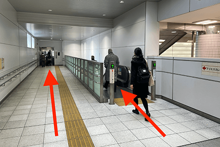 2エレベーター、エスカレーターで東口へ出られます。