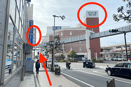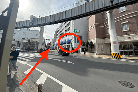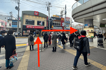 3目の前の道をマクドナルド側へ渡って右へ進みます。