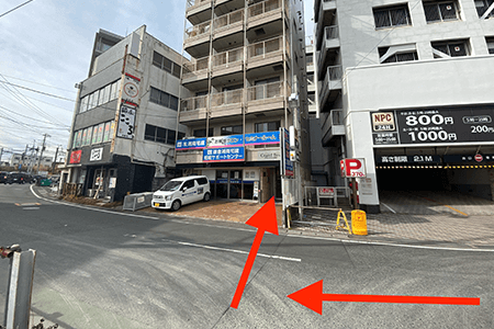車でお越しの場合は目の前に有料パーキングがございますので、ご利用ください。